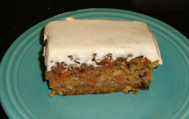 Sarah’s Kitchen, Pineapple Carrot Cake, with glaze and cream cheese frosting, glad your hubby approved, it looks to die for.
